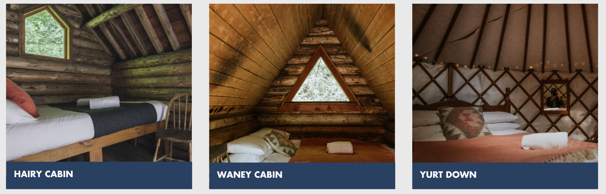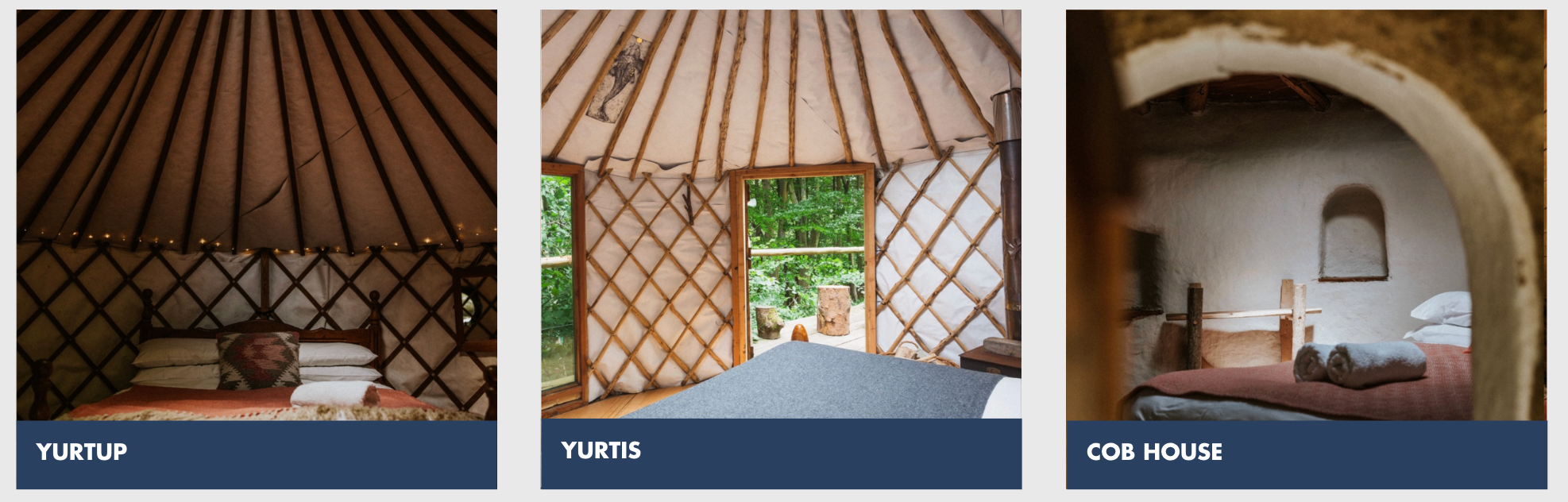 There are six different rooms available - three Yurts, two Log Cabins and a Cob House, all scattered within the woods.